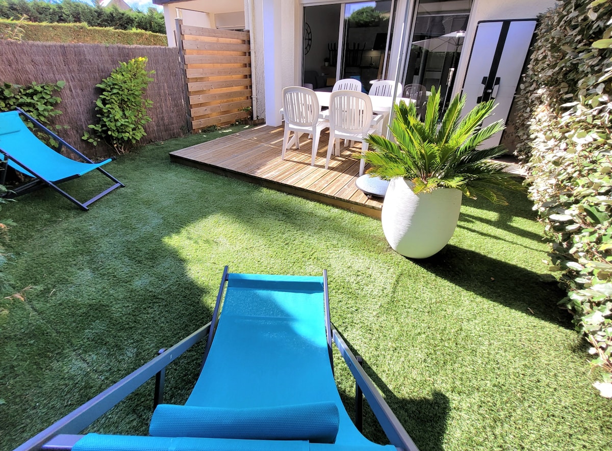2 VELOS (1 VTC femme et 1 VTC Homme ) - jusqu’au 08/11/2025 et à partir du 06/04/2026 T1 bis de 24 m2 3 étoiles Plages et commerces à pied (250 m) 1 place de parking réservée Cuisine entièrement équipée: plaque à induction, four/micro-ondes, lave-vaisselle, Nespresso… Espace nuit indépendant : lit gigogne 2 matelas de 80*200 (de même hauteur formant un grand lit) Pièce de vie: canapé convertible 2 places SMART TV Lave-linge Jardin clos 36 m2 exposé Sud
