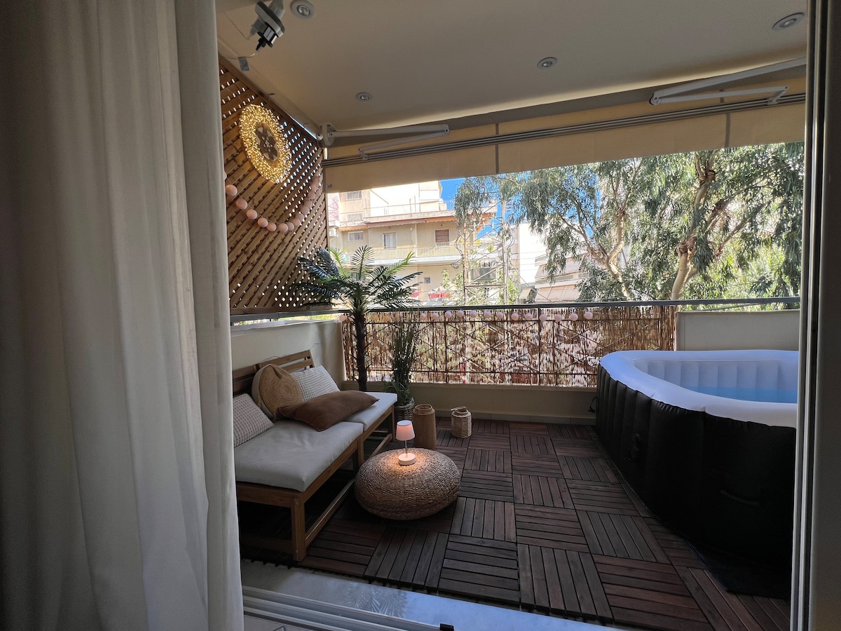 7층에 위치한 이 놀라운 33 ㎡ 스위트는 최상급의 소재와 미니멀/키클라데스 디자인으로 완전히 개조된 최신식입니다. 해변은 도보로 약 5분 거리에 있습니다. 특히 일몰에 바다 전망이 정말 멋집니다. 커다란 발코니에서 아크로폴리스를 바다를 즐길 수도 있습니다! 편안하게 온수 욕조 경험을 즐기세요. 프라이버시가 보장됩니다. 매우 독특하고 고급스러운 경험입니다!