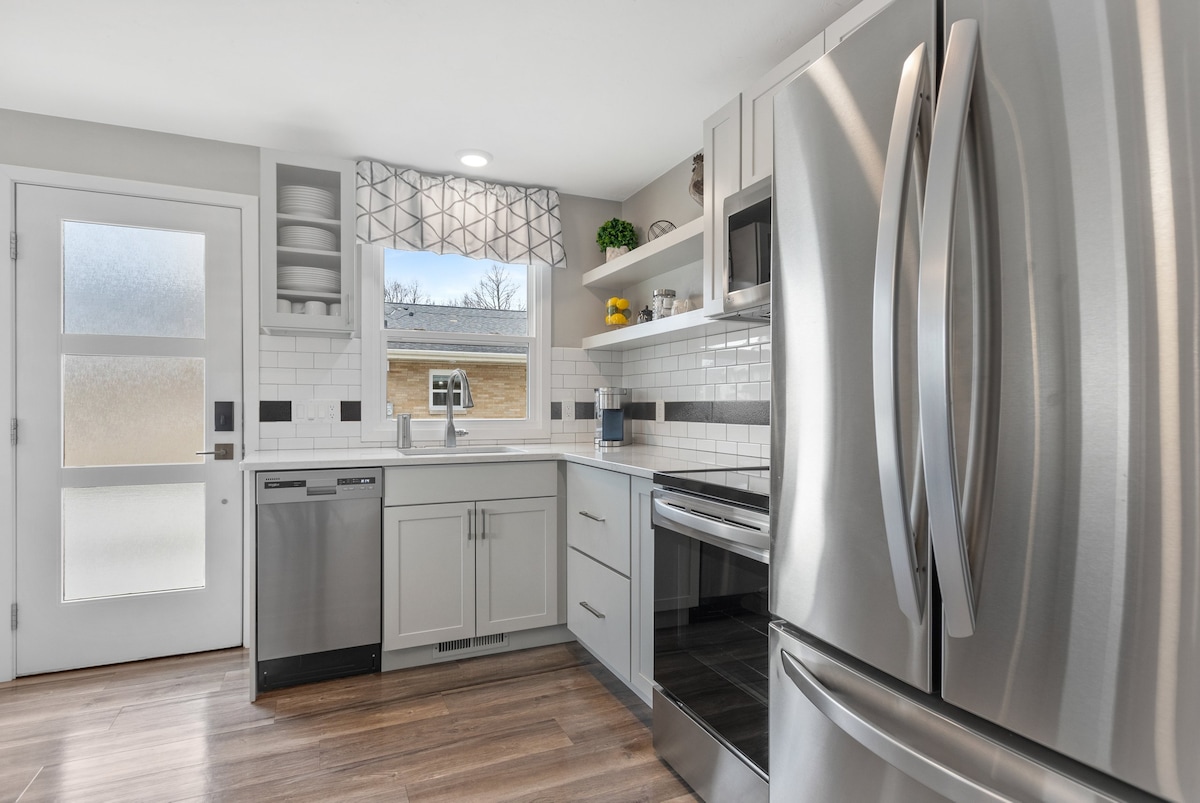 램보 필드에서 불과 1.5마일, 시내와 벨린 병원까지 2마일 거리에 있는 이 새롭게 리모델링한 침실 3개, 욕실 2개의 숙소는 그린 베이 지역을 탐험하거나, 패커스 경기 전에 테일게이트를 즐기거나, 콘서트, 결혼식, 졸업식 또는 기타 큰 행사를 즐기기에 완벽한 장소입니다. 1층에 침실 2개와 욕실이 있는 개방형 거실/식사 공간을 즐기거나 고급스러운 킹사이즈 침대, 전용 욕실, 숨겨진 독서 공간이 있는 위층의 대형 침실에서 휴식을 취하세요.