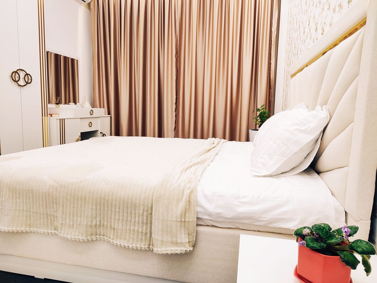 Welcome! We’re proud to offer one of the best guest experiences in the city. Golden Sands is a modern, well-designed apartment created for guests who value comfort, functionality, and a calm, balanced interior. The space is suitable for both relaxing stays and productive visits. Located in a secure residential complex near Mega Center Almaty and First President’s Park, the apartment offers a convenient location combined with a quiet, residential atmosphere.