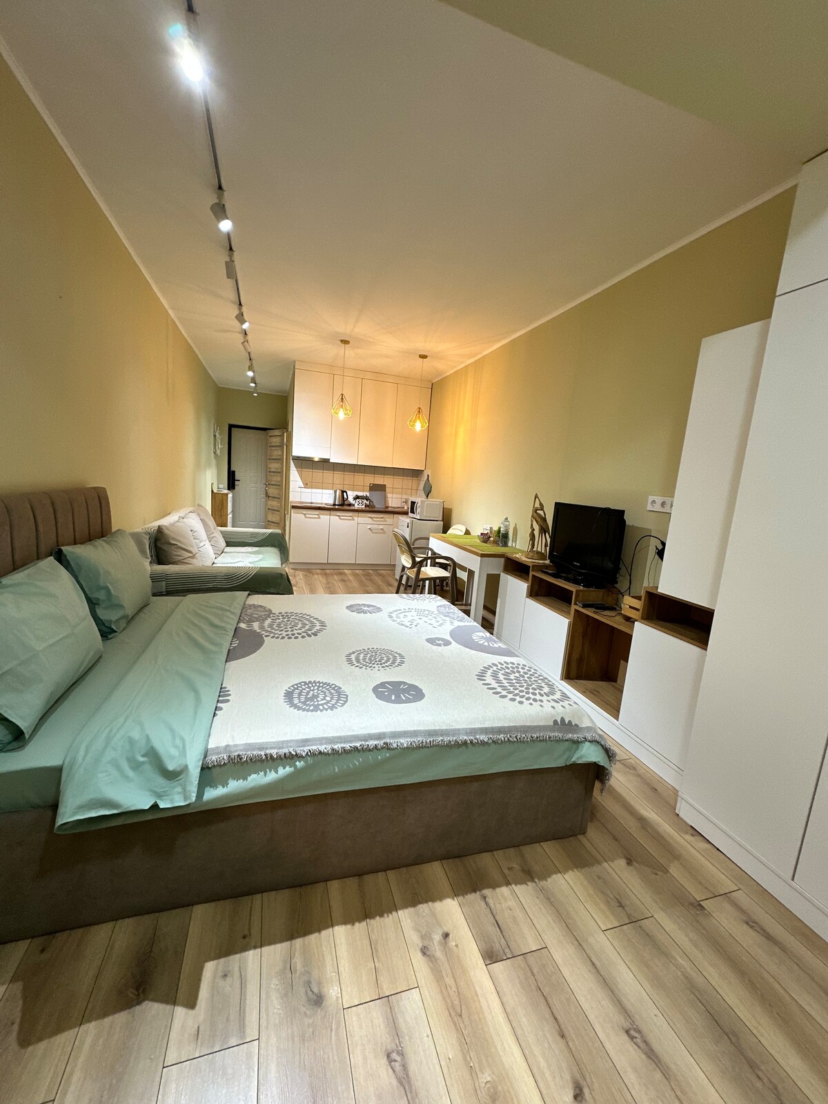 Have fun in our cozy and stylish place. Modern and functional studio in Almaty city for 2-4 people. Infants and children friendly. Newly refurbished entire place has everything you need for your convenient stay. The apartment has fully equipped kitchen, Wi-Fi and all needed amenities. The apartment is located next to the big shopping mall with an array of restaurants, cafes, with supermarket. The main City Walking street is in 10 minutes by walk.