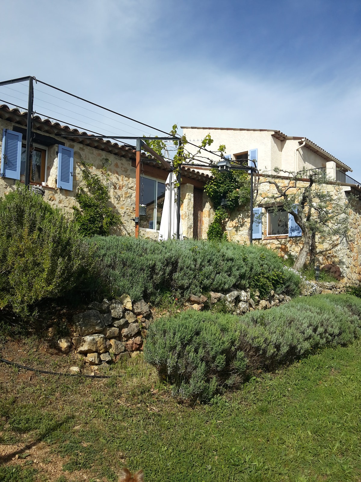 Situé à 3 kms du village et au coeur d'une magnifique oliveraie de 2 hectares, ce joli studio indépendant de 40 m2 bénéficie d'une exposition plein sud avec une vue magnifique et à 360° sur les massifs de l'Estérel et des Maures, jusqu'à la mer Méditerranée ; dépaysement et sérénité garantis Proche des sentiers de randonnée, du lac de St Cassien, de la rivière, à 40 mn de la mer, de CANNES, de GRASSE, à 1 H de NICE et des stations de ski Votre petit animal de compagnie est le bienvenu (- 5 kg)