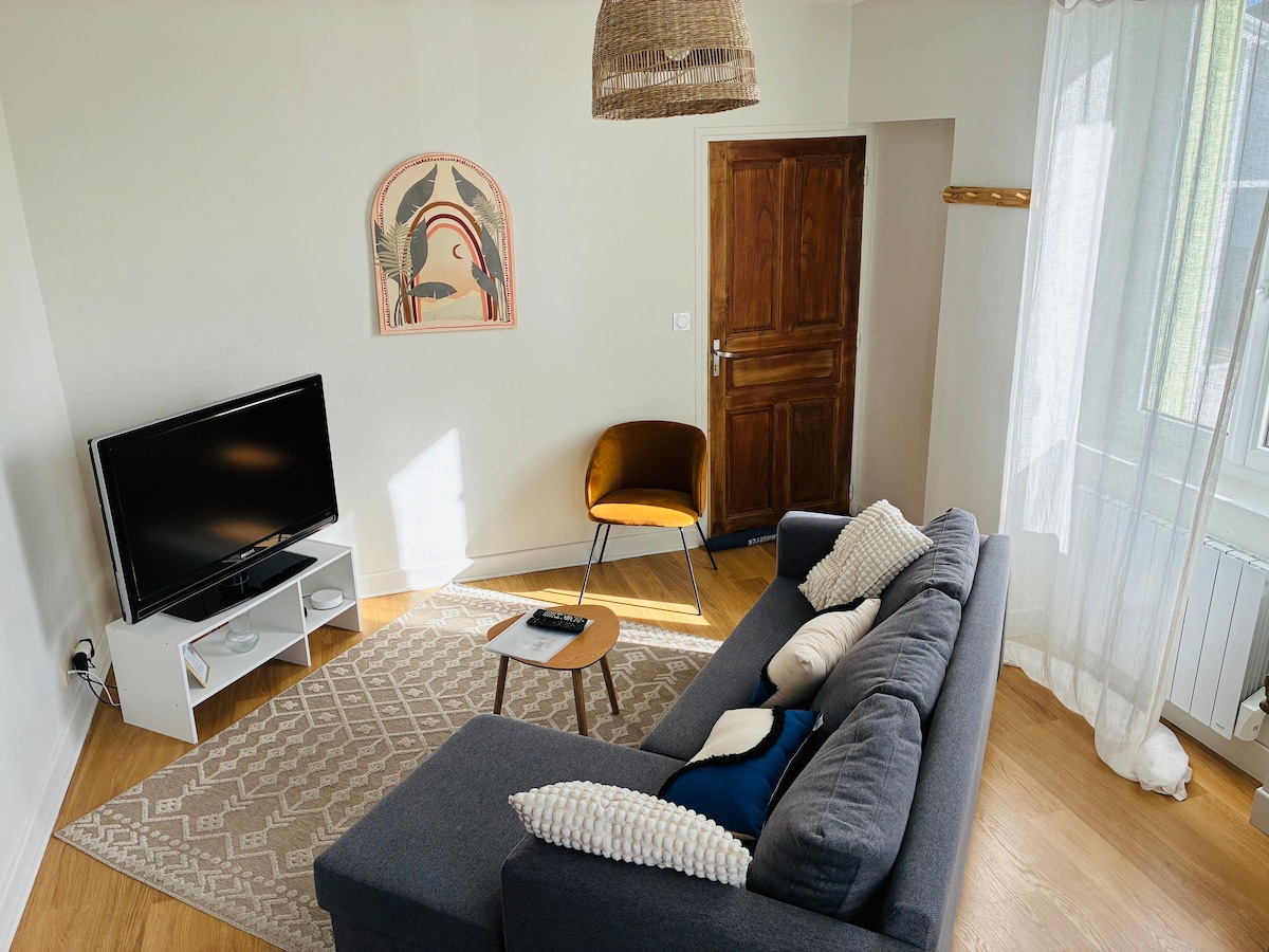 새롭고 우아하며 이상적인 위치에 있는 숙소를 즐기세요. 이 리모델링된 T2는 침실, 거실/식당, 주방, 화장실이 있는 욕실로 구성되어 있습니다. 대성당에서 도보로 15분, 경기장에서 5분 거리에 있어 편의 시설을 모두 이용하실 수 있습니다. 출장자나 휴가객 모두 전용 출입구와 무료 주차장을 이용할 수 있습니다. 요청 시: - 폐쇄형 차고에 2륜 차량을 보관할 수 있습니다. - 두 번째 침대 설치 및 준비(별도의 침대 2개인 경우).