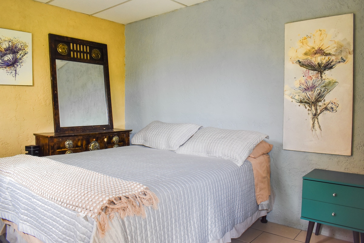 “Entre Volcanes es un espacio pensado para pausar, respirar y reconectar. Ideal para parejas que buscan silencio, café lento y atardeceres frente al Volcán de Agua.” Bella propiedad situada en condominio exclusivo, seguridad 24 horas , rodeado de el volcán de fuego y alotenango, la suite cuenta con terraza con una vista impresionante del volcán de agua. Relájate en esta escapada única y tranquila. Vistas increíbles , lugar confortable, espacios bien distribuidos .