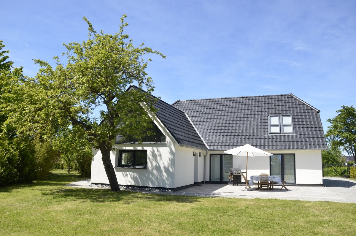 Gemütlich, hell und das Meer in Sichtweite. Herzlich willkommen im Ferienhaus Rügen Hahn! Das charmante Ferienhaus befindet sich in einer idyllischen Lage zwischen Hiddensee und Kap Arkona, in einer kleinen und feinen Einfamilienhaussiedlung. Auf einem Wanderweg, quer über das Feld, erreichst du in wenigen Gehminuten einen der schönsten Naturstrände Rügens. Direkt im Ort befindet sich eine Wassersportschule, wo du das Windsurfen und das Kitesurfen unter besten Bedingungen erleben kannst.