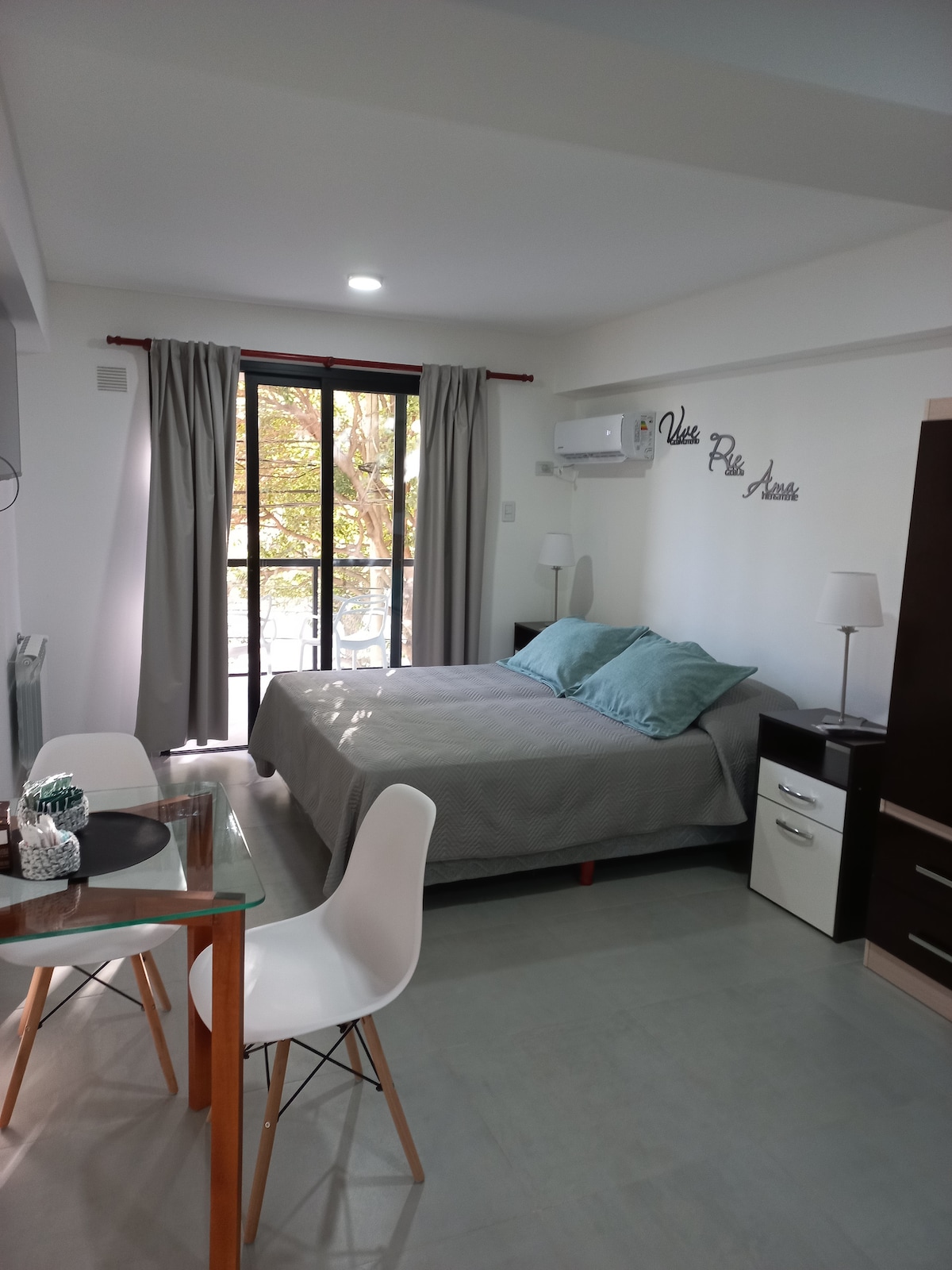 Monoambiente nuevo, ambientado para una cómoda estadía en la ciudad. Cuenta con aire acondicionado, calefacción central, cama matrimonial y un espacio de cocina/comedor, además de un baño espacioso. Espacio no fumador. Se ubica dentro de un edificio familiar, a aproximadamente 10 cuadras del centro de la ciudad, 4 cuadras del shopping alto noa y la zona gastronómica de la Balcarce.