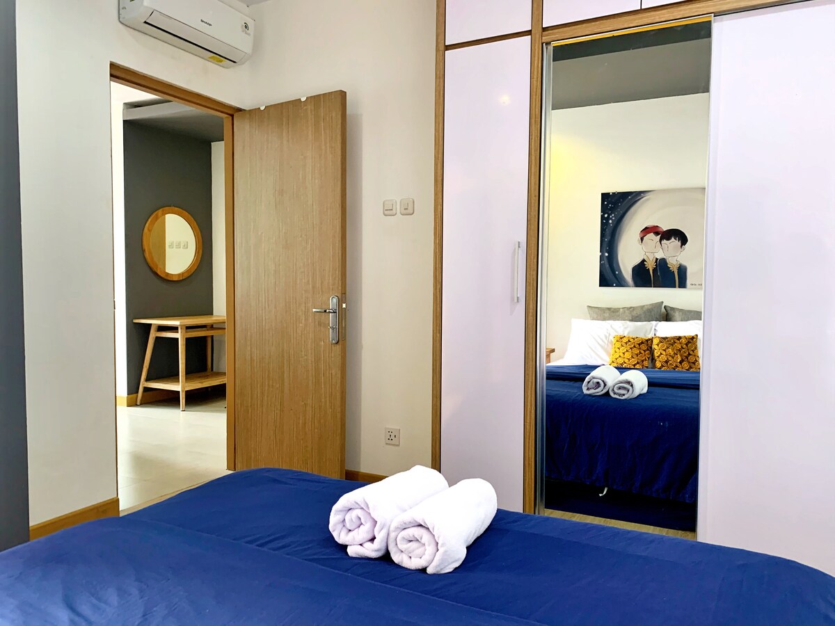 욕야카르타에 오신 것을 환영합니다! 도심에 위치한 2BR 플랫에서 회원님을 맞이하게 되어 기쁩니다. 4명이 편안하게 지낼 수 있으며, 무료 주차, 수영장과 헬스장 이용이 가능합니다. 전설적인 요리뿐만 아니라 현지 및 서양 음식을 제공하는 상점과 레스토랑도 도보 거리 내에 있습니다. 두 개의 쇼핑몰도 근처에 있습니다.