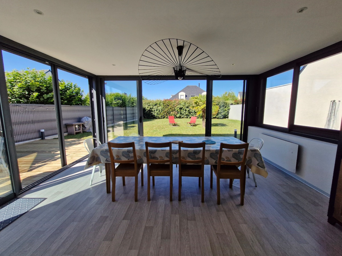 Petite maison de vacances avec beaucoup de caractère construite en 2014 sur un agréable terrain arboré à 300m de la plage et 400m du bourg avec toutes les commodités. Fonctionnelle et facile à vivre aux beaux jours, confortable et chaleureuse en arrière saison, nous l'avons meublée dans l'esprit d'une villégiature de bord de mer des années 60. Un lieu idéal pour se ressourcer mais aussi visiter la Presqu'île Guérandaise, la Brière, le Golfe du Morbihan ou Belle-Ile-en-Mer (depuis La Turballe).