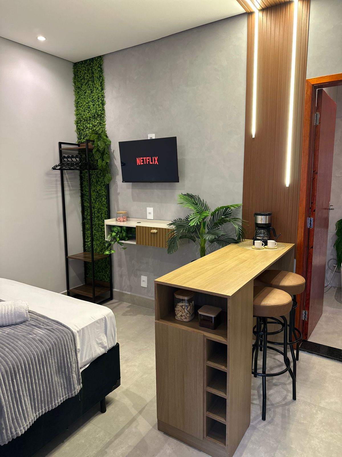 Este nosso novo espaço proporciona o estilo antigo com a modernidade atual. Trazendo elegância e conforto para os seus dias de descanço. Usamos a criatividade pra lhe proporcionar uma experiência perfeita. Aproveite sua estadia e sinta-se em casa! O espaço conta com TV smart com netflix gratuita, ferro de passar, liquidificador, sanduicheira, micro-ondas, 2 ventiladores de teto, secador de cabelo, galão de 10 litros de água potável, uma vaga na garagem. CONTÉM AR CONDICIONADO