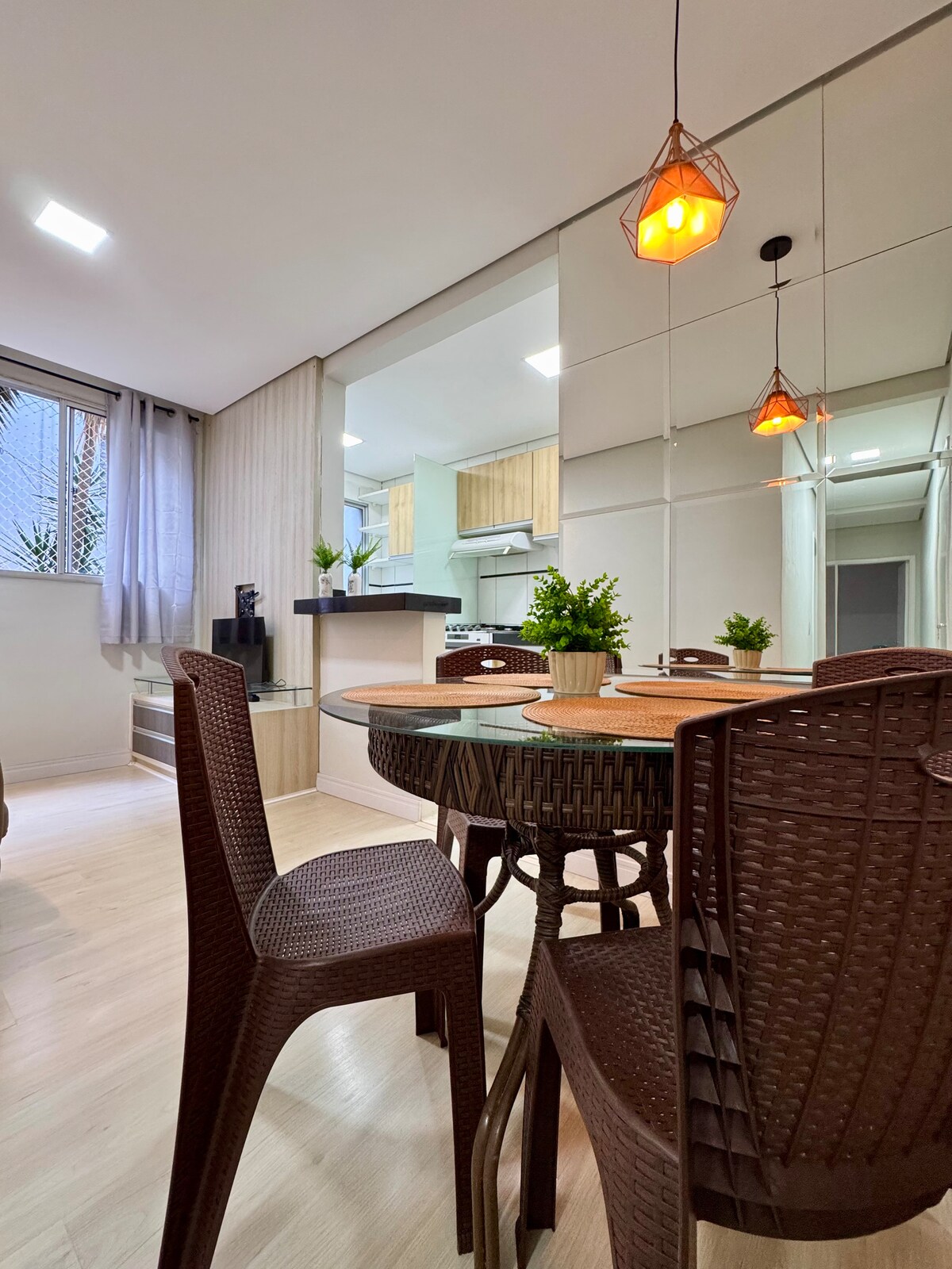 Seja Bem Vindo a este confortável apartamento, localizado no pavimento térreo com fácil acesso. Apartamento completo, para você e sua família ficarem confortáveis. Dentro de um condomínio com portaria 24 horas, deixando sua acomodação muito mais segura. Apartamento com 2 dormitórios, sendo 1 com 1 cama de casal e o outro dormitório com duas camas de solteiro, 1 banheiro, sala e cozinha. Bloco próximo a portaria. 1 vaga de garagem coberta.