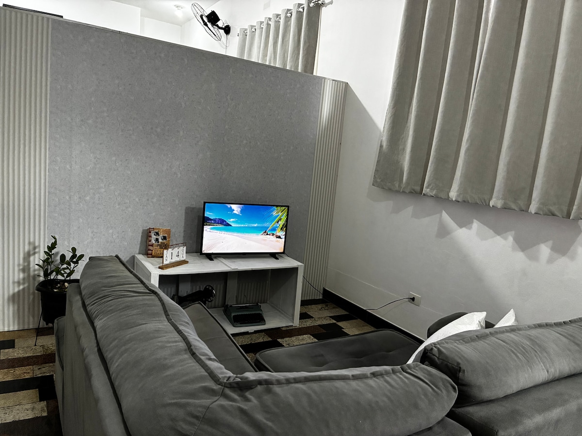 Este nosso novo espaço proporciona o estilo antigo com a modernidade atual. Trazendo elegância e conforto para os seus dias de descanço. Usamos a criatividade pra lhe proporcionar uma experiência perfeita. Aproveite sua estadia e sinta-se em casa! O espaço conta com TV smart com netflix gratuita, ferro de passar, liquidificador, sanduicheira, micro-ondas, 2 ventiladores de teto, secador de cabelo. CONTÉM AR CONDICIONADO Esse espaço NÃO contém vaga na garagem.