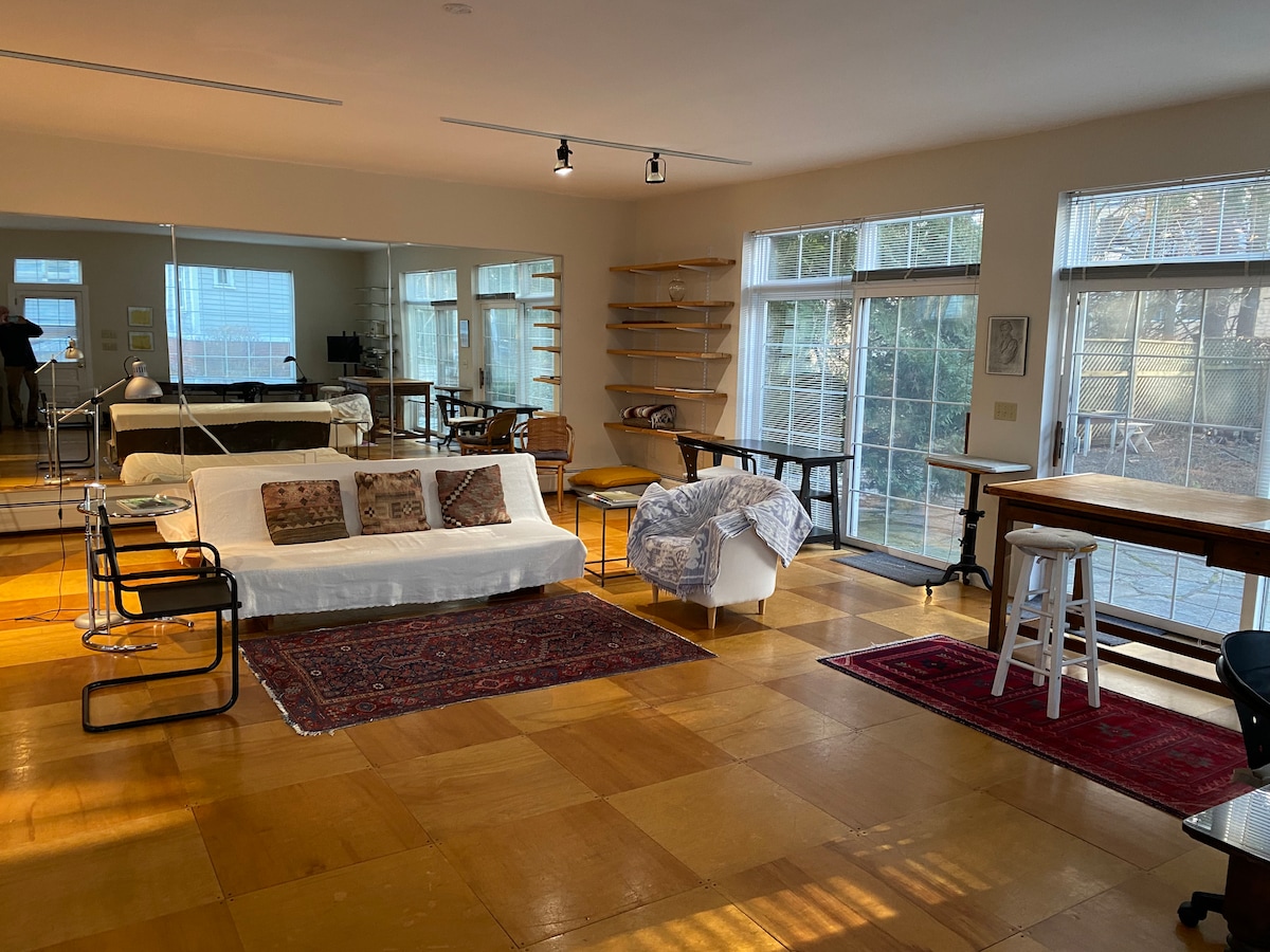 중요: 친환경 정책에 대한 전체 설명을 읽고 예약하기 보다는 '호스트에게 연락하기' 버튼을 클릭하세요. 요청에 대해 신속하게 응답해 드리겠습니다. 배려해 주셔서 감사합니다! 아름다운 정원으로 둘러싸인 독특한 스튜디오, 로프트 스타일, 시내와 스미스 칼리지까지 도보로 가까운 거리에 있습니다. 5개 대학을 방문하고, 결혼식, 졸업식, 워크숍, 글쓰기 및 연구에 참석하기에 완벽한 숙소입니다. 하이킹 및 자전거 도로와 가깝습니다.