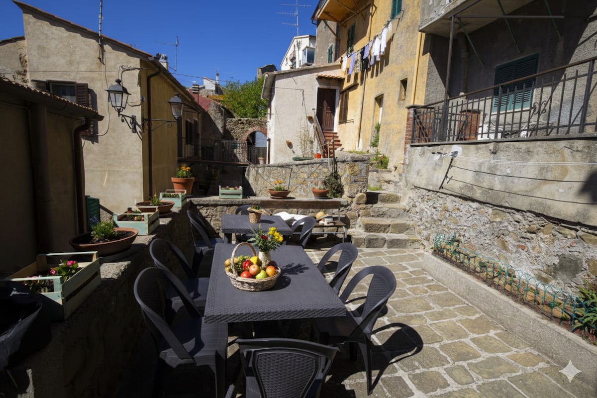 Nel cuore del borgo di Buriano, a soli 15 km dalle belle spiagge di Castiglione della Pescaia, arredato con cura, silenzioso, fresco e ventilato, ideale punto di partenza per escursioni al mare, in montagna e nei parchi, nei siti archeologici. (nel periodo invernale sono da aggiungere costi per riscaldamento)