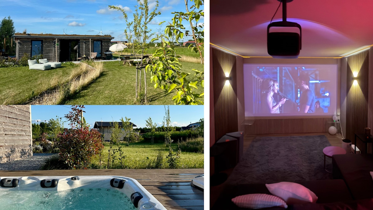Knus houten tuinhuis met bioscoop kelder en jacuzzi. Dé perfecte plek om even helemaal tot rust te komen. - Eigen privé oprit, ingang en ruime tuin - Luxe badkamer en een jacuzzi - Bioscoopkelder met slaapbank voor een knusse filmavond - Gezellige keuken compleet uitgerust inclusief oven - Het bos 🍁 is binnen 5 minuten loopafstand 📍 Perfecte ligging: Rustige omgeving en toch met 30 min in Amsterdam, Utrecht of Hilversum. Supermarkten (AH, Lidl, Odin) liggen op 5 min rij afstand.