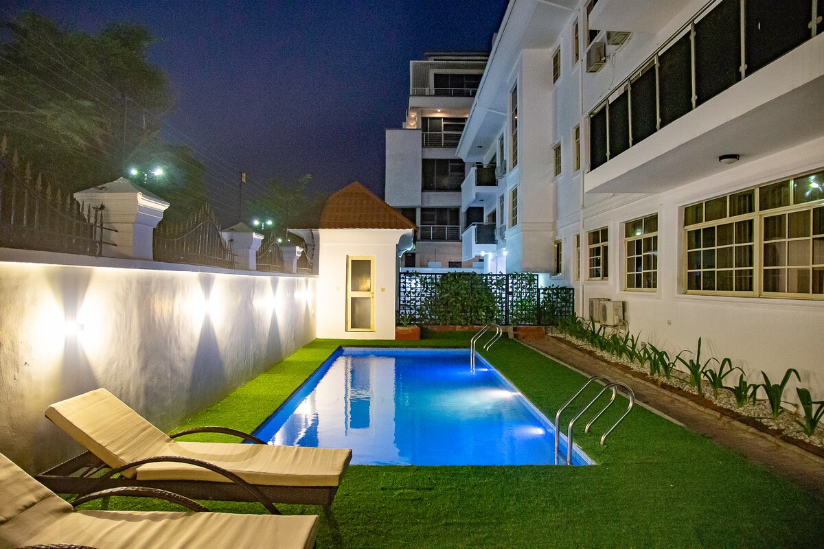 A tastefully furnished apartment in the lovely, quiet and prestigious environment of Banana Island Beautifully large living area A spacious state of the art kitchen Beautiful bedrooms and a paradise master bedroom that houses a mini workplace 24hr power supply, WIFI and security Netflix and chill A swimming pool A mini gym A snooker pool game A fully covered park garage Concierge customer service Daily housekeeping In house laundry service A private chef on demand