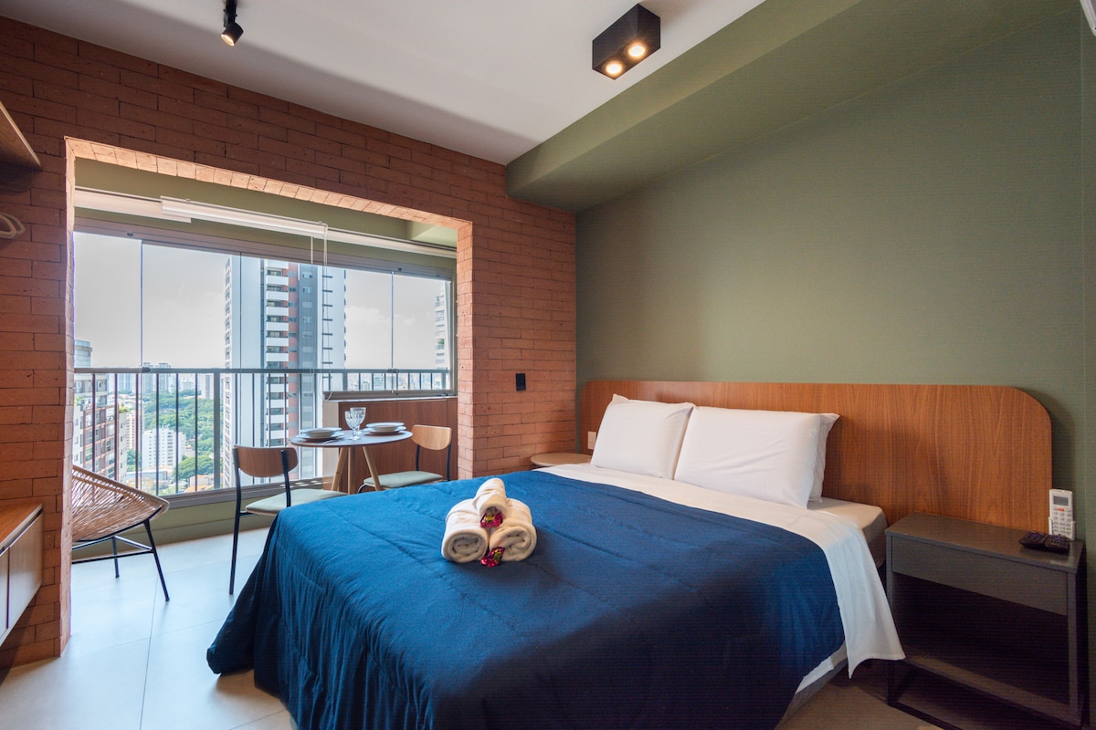 Estรบdio espaรงoso com muito design, arquitetura e a melhor vista de Sรฃo Paulo. Loft completo! Com cama queen, closet, ar condicionado silencioso, cozinha completa, home office, WI-FI, TV 55โ e uma belรญssima banheira de imersรฃo, de onde pode apreciar o seu drink preferido e curtir uma vista apaixonante. Sรฃo Paulo toda estarรก hรก poucos minutos de vocรช. Acesse o metrรด andando apenas 200m. Reserve com tranquilidade! Proporcionaremos uma excelente hospedagem e uma รณtima experiรชncia!