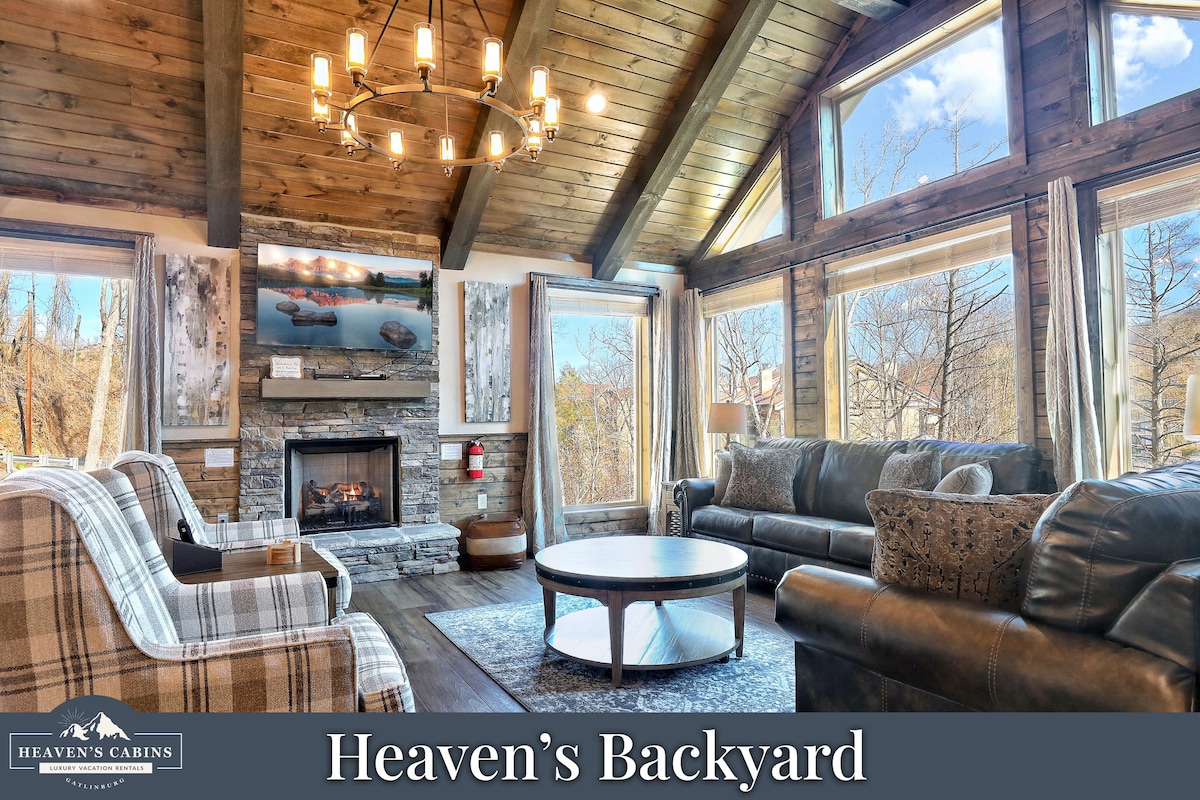 럭셔리한 통나무집, 전망, 게임룸, 온수 욕조, 극장!