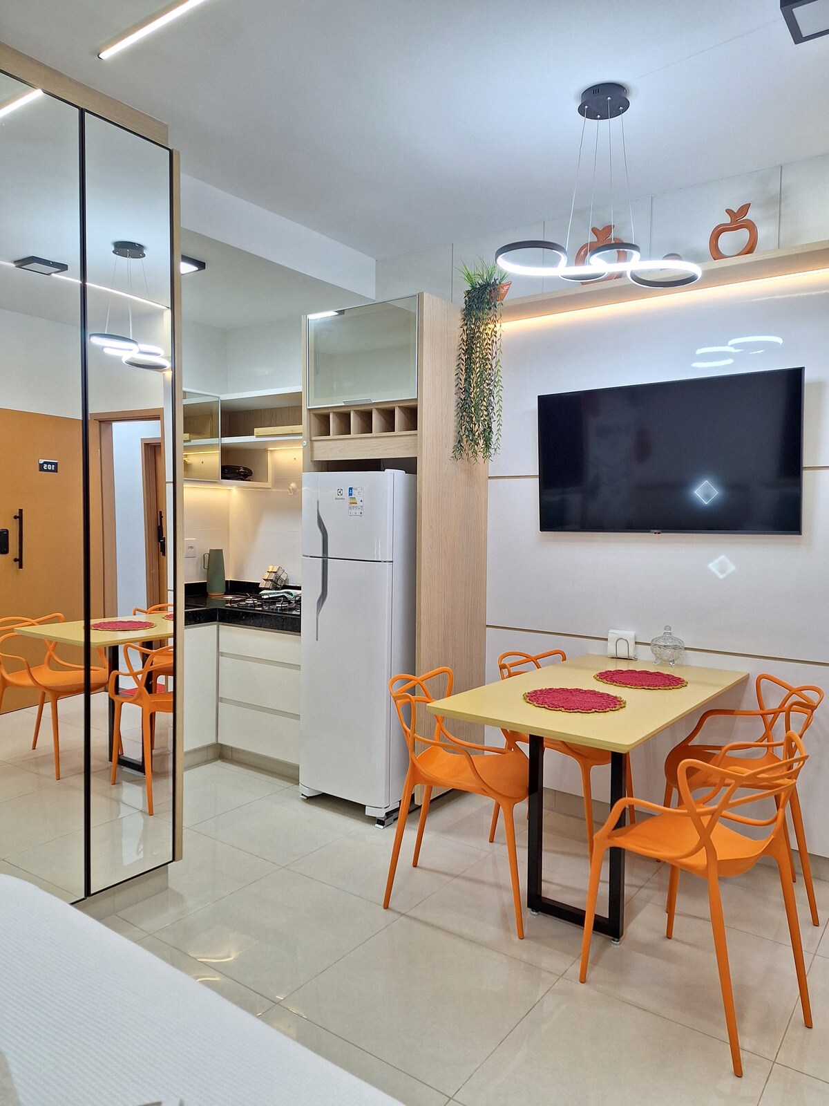 HIT SKY, 아늑하고 현대적이며 기능적인 스튜디오, Hospital Ânima 옆, UniEvangelica 앞에 위치, 숙박 기간 동안 편안함과 실용성을 제공하도록 설계되었습니다. 숙소는 조명이 잘 되고, 정돈되어 있으며, 휴식, 업무 또는 레저를 추구하는 게스트를 맞이할 수 있도록 갖추어져 있습니다. 처음부터 집처럼 느낄 수 있도록 모든 것이 준비되어 있습니다. 이곳에서는 한 곳에서 평온함, 편안함, 실용성을 모두 누릴 수 있습니다.