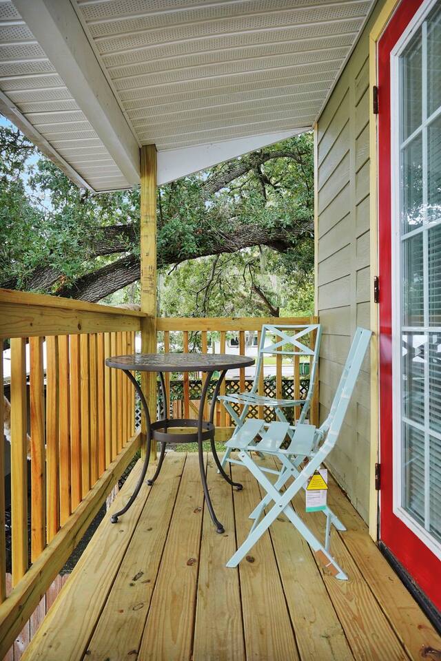 Welcome to our newly spacious and private renovated bathroom with our outdoor shower. See photos! This Tiny House has all you need for a cozy, private stay while visiting St. Augustine. The Tiny House sits on 3/4 acres. You will feel the tranquility of this magical property and only 10 minutes to Vilano Beach or the Historic Downtown. The studio is equipped with a sink, toilet, kitchenette, coffee/tea. Commune with nature in your Private Exotic Outdoor Shower, hottub (closed July & August).
