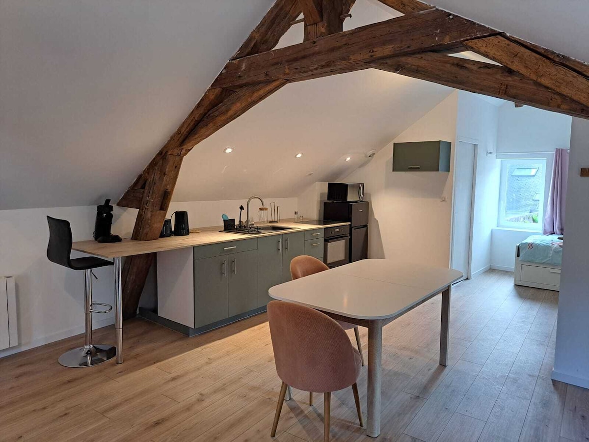 Welcome to this large 50 m2 studio in the heart of Ancenis, 80 metres from the banks of the Loire. Bright, quiet and well-equipped, it offers a calm, cocooning atmosphere. The contemporary, elegant decor will help you relax after a busy day. This pretty gîte is on the ground floor of an old building set in a charming garden planted with trees and surrounded by stone walls, and is ideally located right next to the shops and the Château. Bikes and families welcome