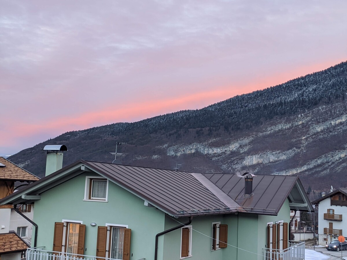 The apartment is a luxurious wooden penthouse with open space surrounded by balconies and terraces. Consisting of A double room with balcony, a bedroom with 2 single beds and a large terrace, bathroom with shower. Living room and open kitchen, with a large terrace and two panoramic balconies overlooking the Brenta Dolomites. The kitchen is equipped with oven, gas, microwave, American fridge, all necessary kitchen utensils.