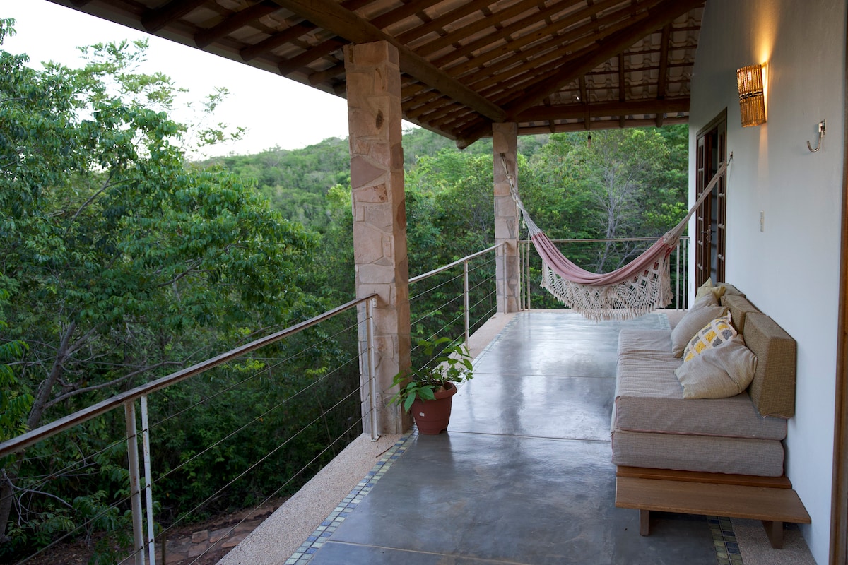 Um refúgio amplo, arejado e silencioso, onde o verde entra pelas janelas e o tempo desacelera. Cercada por mata exuberante, na divisa do Parque Nacional da Chapada Diamantina, a casa é embalada pelo canto dos pássaros e o som das cigarras. A 5 minutos das trilhas do Ribeirão do Meio e da Cachoeira do Sossego, e a 14 minutos a pé do centro de Lençóis. No mato, mas com calçamento e sem buracos. O raro equilíbrio entre natureza profunda e cidade viva. Um lugar de descanso, presença e silêncio =)