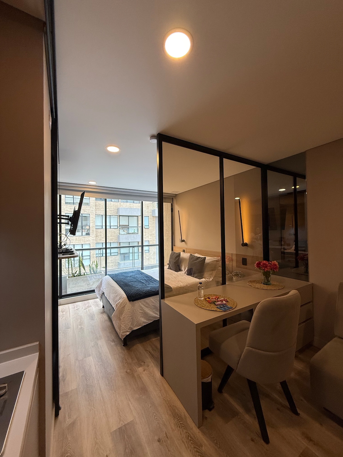 Wake up to a panoramic view of BogotΓ‘βs iconic Zona G. Start your day with a delicious cup of Colombian coffee, our treat! - Enjoy a workout in the buildingβs gym, then explore the cityβs most celebrated cafΓ©s and restaurants, all within walking distance. In the afternoon, relax in the sauna or enjoy the sunset from the heated rooftop pool. As evening falls, head just minutes away to Zona T to enjoy the cityβs best nightlife. Located in BogotΓ‘βs safest residential building, with 24/7 security.