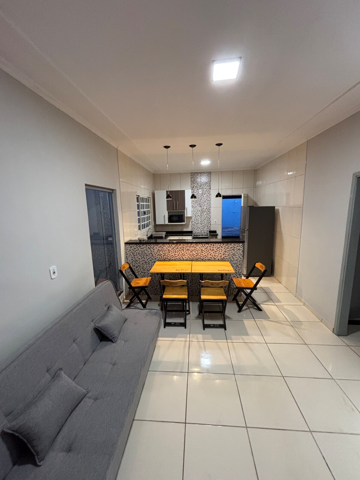 Imagine estar no centro da cidade, com tudo ao seu alcance, e ao mesmo tempo poder relaxar em um quintal amplo e privativo, essa casa é o equilíbrio perfeito entre praticidade e tranquilidade. Ideal para casais, pequenos grupos ou viajantes a trabalho. Conta com uma área externa com churrasqueira. Assim, você pode caminhar até mercados, padarias ou aproveitar o parque aquático da cidade, e ainda encerrar o dia com um churrasco no quintal.