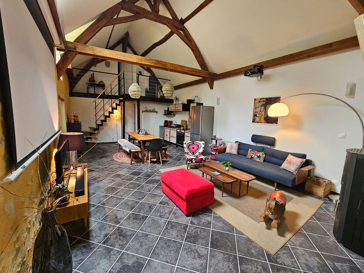 Profitez en famille ou entre amis de ce joli gîte rénové très convivial, doté de grands espaces de vie et d' un jardin- terrasse fleurie Télétravailler y est possible.Une place de parking pour 1 voiture et une piscine partagée accessible de juin à septembre)( plages horaires privatives à définir )ping pong. A 4kms des commerces. Linge de toilette possible à la location. La campagne, la Loire et la ville sont à proximité pour vous offrir des moments choisis