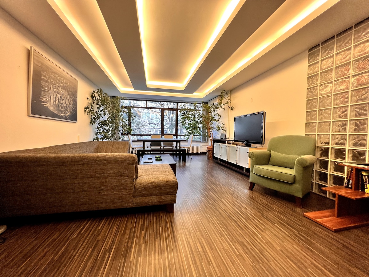 Stylish and cozy 3-bedroom + 1 living room apartment in the heart of Ankara! This peaceful city-center retreat offers a beautifully decorated living room, perfect for relaxing after exploring the vibrant surroundings. Just steps away from supermarkets, street shops, and the lively pulse of Ankara. Ideal for families or groups seeking comfort and convenience. Fully equipped kitchen for a comfortable stay with all essentials provided. 50 Mbps internet, Cable TV, Netflix.