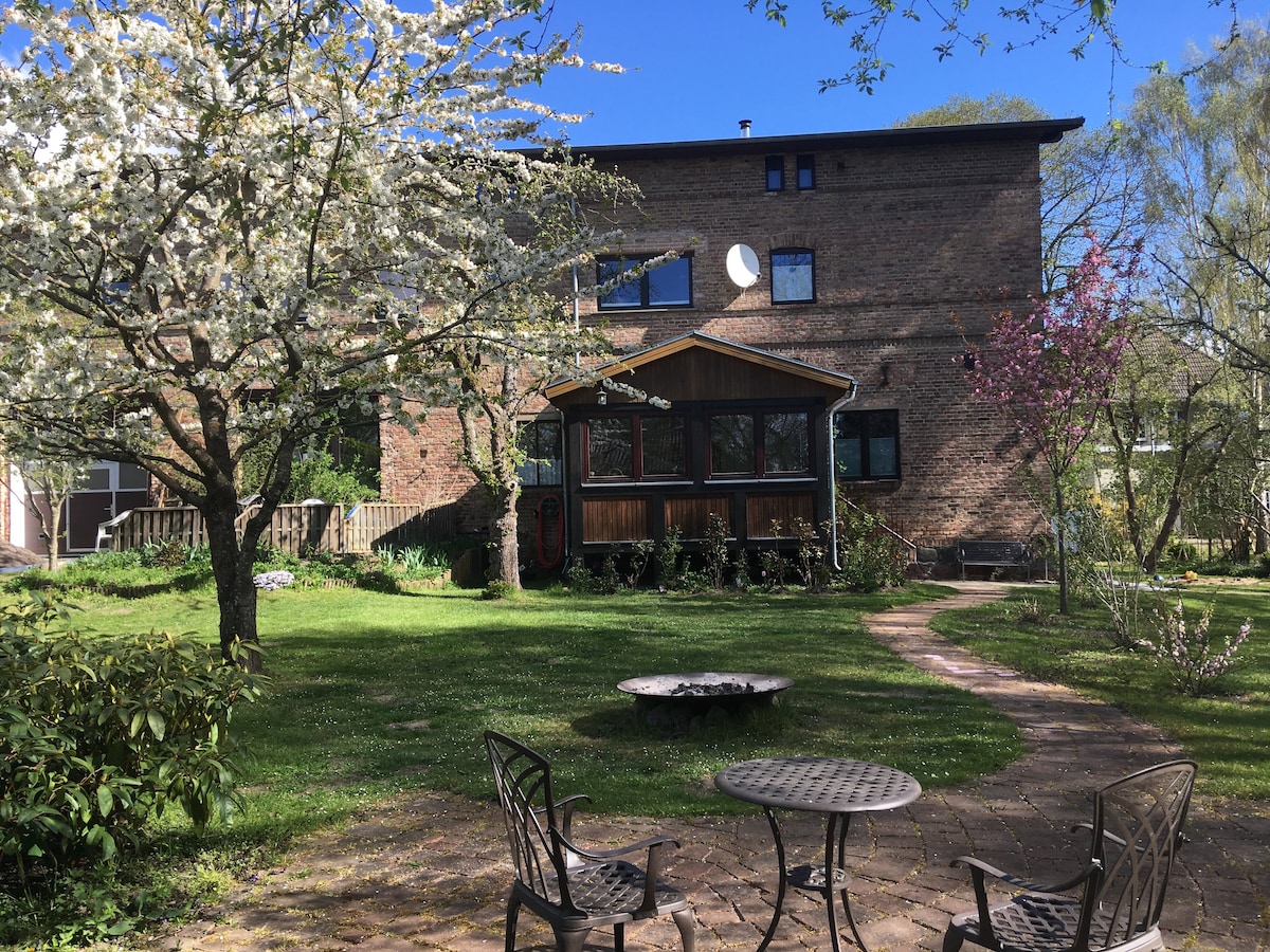 오래된 직장과 더불어 친구와 게스트를 위해 개별적으로 작은 사이드 룸을 개발했습니다. 어떤 것은 현대적이고, 어떤 것은 과거 시대의 매력을 가지고 있습니다. 우리에게는 일관성이 있어 보이지만, 일부는 여전히 변화의 과정에 있습니다. 그래서 어떤 것도 표준이 아닙니다. 저희가 아직 고려하지 않은 사항과 게스트에게 유용한 사항은 일반적으로 신속하게 보완할 수 있습니다. 전원주택은 농장 가장자리에 있는 자연 정원으로 둘러싸여 있어 작고 농업이 활발한 마을에 위치하고 있습니다.