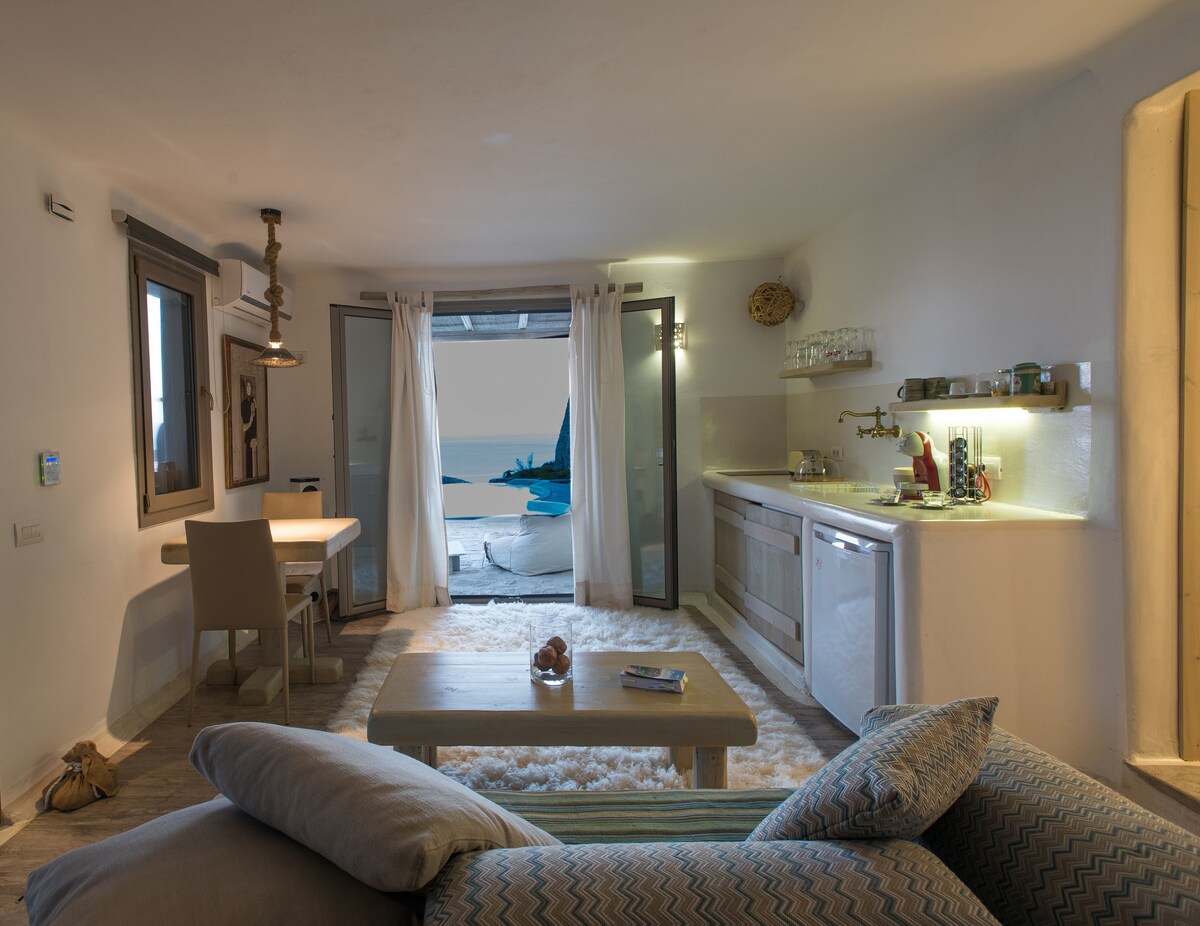 39㎡의 고급스러운 스위트룸과 전용 수영장, 야외 자쿠지(3인용), 파노라마 바다 전망을 즐길 수 있는 45㎡의 파티오. 해부학적인 매트리스가 있는 퀸사이즈 침대, 구스페더 소파(1명 더 수면 가능), 주방, 무료 넷플릭스가 있는 55인치 스마트 삼성 TV, 블루투스 하이파이 소니 사운드 시스템이 포함되어 있습니다. 야외 식사와 키클라데스 스타일의 가구가 완비된 대형 테라스. 완벽한 프라이버시, 5성급의 편안함, 컨시어지 서비스를 즐기세요. 세련되고 프라이빗하며 특별한 독특한 미코노스 휴양지를 찾는 커플이나 소규모 가족에게 이상적입니다.