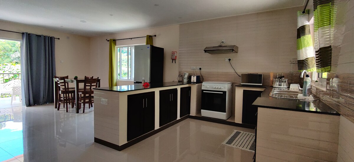 공항에서 차로 5 ~ 7분 거리에 있는 마헤의 어퍼 카욜레 에스테이트, 앙세 오 핀에 위치하고 있습니다. 이 아파트는 안전하고 평화롭고 조용한 위치에 있으며, 오르막으로 파노라마 전망을 감상할 수 있습니다. 주요 도로에 해변과 상점이 있으며, 도보로 10 ~ 15분 거리에 있습니다. 신체 운동을 하고 싶지 않다면, 렌터카를 강력히 추천합니다. 이 아파트는 간이 주방, 넓은 침실, 샤워실 및 화장실, 무료 와이파이 및 숙소 청소를 자랑합니다. 숙소에 반려동물 (고양이 및 개) 이 있습니다.