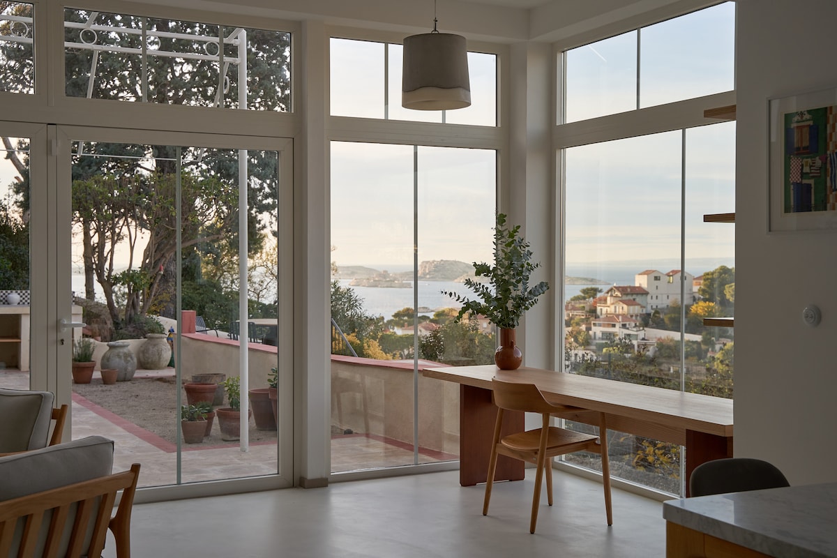 각 객실에서 탁 트인 바다 전망을 감상할 수 있는 밝은 아파트입니다. 넓은 테라스에서 숨막히는 일몰을 감상하고, 해먹에서 휴식을 취하며, 전망을 즐길 수 있습니다! 마르세유 최고의 동네 중 하나인 엔두메 한가운데에 편리하게 위치해 있으며, 바다에서 도보로 단 2분 거리에 있습니다! 에어컨 + 빠르고 안정적인 와이파이.