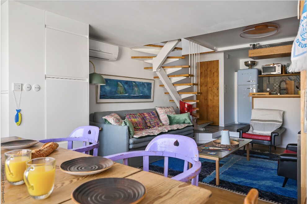 Perched high above the ground floor and overlooking the bay of Marseille, this sophisticated and cozy 1 bedroom studio apartment in the center of the city provides the perfect blend of urban convenience and natural beauty. As Marseille apartments go, this generous, air-conditioned space is at the summit of Airbnb options in the region, offering all-day sunlight and endless sea and mountain views.
