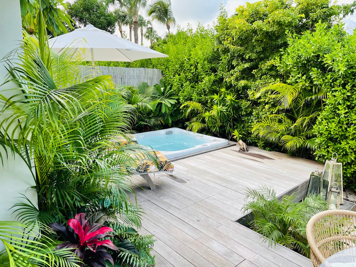 저희 작은 파라다이스에 오신 것을 환영합니다. 저희 집 옆에는 열대 정원에 위치한 2개의 독립적인 전원주택이 있으며, 모두 에어컨이 설치되어 있습니다. 수영장에 들어가 일광욕을 즐기고 휴식을 취할 수 있습니다. 해변에서 도보로 5분 거리에 있습니다.