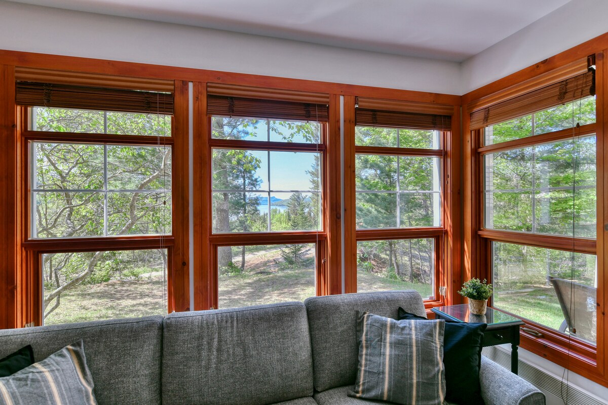 Our Nordic forest chalet is perfect for spending quality time as a couple (or with a kid), or for a work-retreat (with high-speed WiFi). The wooden interior is warm and cozy. The full-height windows offer stunning views over a forested valley. The open-concept kitchen and living room keep you in the conversation while cooking. If you prefer to cook outside, there is a fire pit with a grill and outdoor dining table. Only 70-min drive from Montreal. The lake is a 25-min walk if you park nearby.
