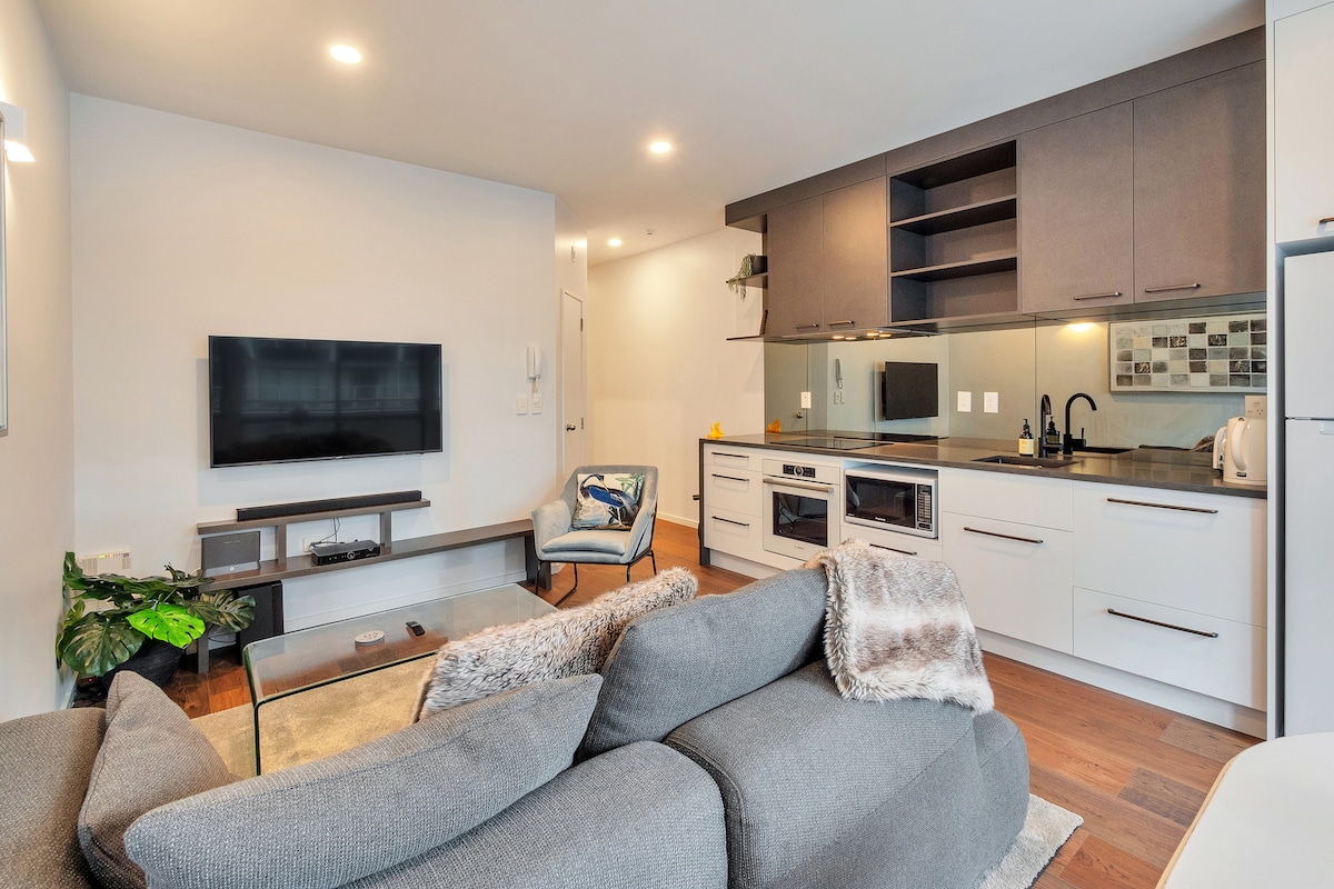 이 희귀한 86평방미터의 침실 1개/욕실 2개 도시 펜트하우스에서 넓은 발코니와 타의 추종을 불허하는 스카이 타워와 도시 전망을 즐기세요. 밝고 세련된 이곳은 오클랜드 최고의 레스토랑, 바, 상점, 극장까지 5분 거리에 있습니다. 4명이 편안하게 취침합니다. 공항버스가 숙소 바로 앞에 있습니다. ⚡한정 특가 — 6월에 소유주가 변경되기 전에 가격 인하(1박당 $179)! 추가 수수료 없이 낮은 청소비. 이 도시의 숨은 명소에 머물 수 있는 기회를 놓치지 마세요.