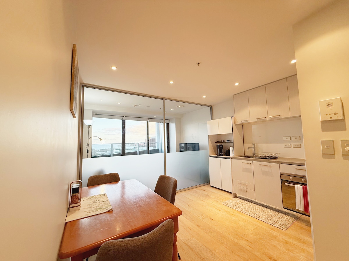 중심부에 위치한 파크뷰 & 편안한 스튜디오. 놀라운 스카이타워와 공원 전망을 즐길 수 있는 실내 헬스장과 야외 옥상 수영장을 이용하여 즐거운 시간을 보내세요. 매우 편안한 퀸사이즈 침대, 개방형 식사 공간과 거실, 이중 유리 바닥에서 천장까지 이어지는 창문이 평화로운 나무 그늘 공원 전망을 제공합니다. 완비된 주방 및 세탁 시설, 무제한 광대역 와이파이, 스마트 TV, 고급 침구 및 수건. 스카이타워, 페리, 기차역, 대학, 바, 레스토랑까지 도보로 쉽게 이동할 수 있습니다.
