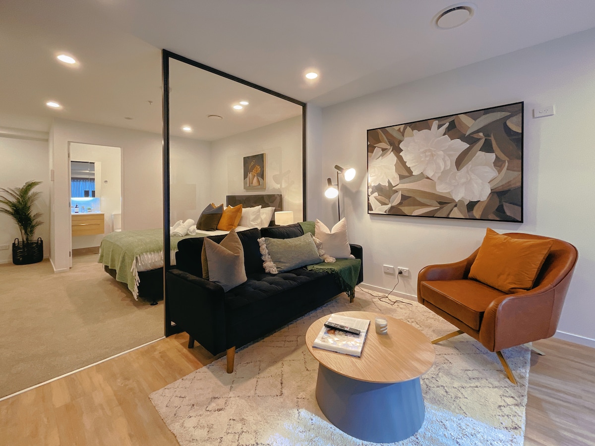 Central location Parkview & Relaxing studio. Enjoy the stay with access to the indoor gym & outdoor rooftop pool, where you could enjoy incredible SkyTower and park views. Super comfy queen-size bed, open plan dining & living area, a double-glazed floor-to-ceiling window give a peaceful-tree shade parkview. Fully functioning kitchen & laundry, unlimited fibre WiFi, smart TV, high-quality linens and towels. An easy walk to Skytower, ferry, train station, university, Bar & Restaurant.