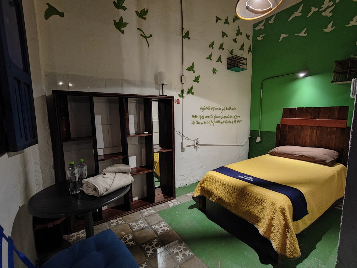 아들 자로초를 모티브로 꾸며진 숙소의 더블 침대와 공용 욕실이 있는 전용 더블룸입니다. 에어컨, 온수 및 멕시코에서 가장 쾌활한 항구에서 며칠을 보내는 데 필요한 모든 것. 역사적인 중심지와 바다에서 몇 블록 떨어져 있습니다. 푸에르토 자로초에서 가장 전통적인 동네 중 하나에 있어 주말 여행에 이상적입니다. 반려동물 동반 가능합니다.