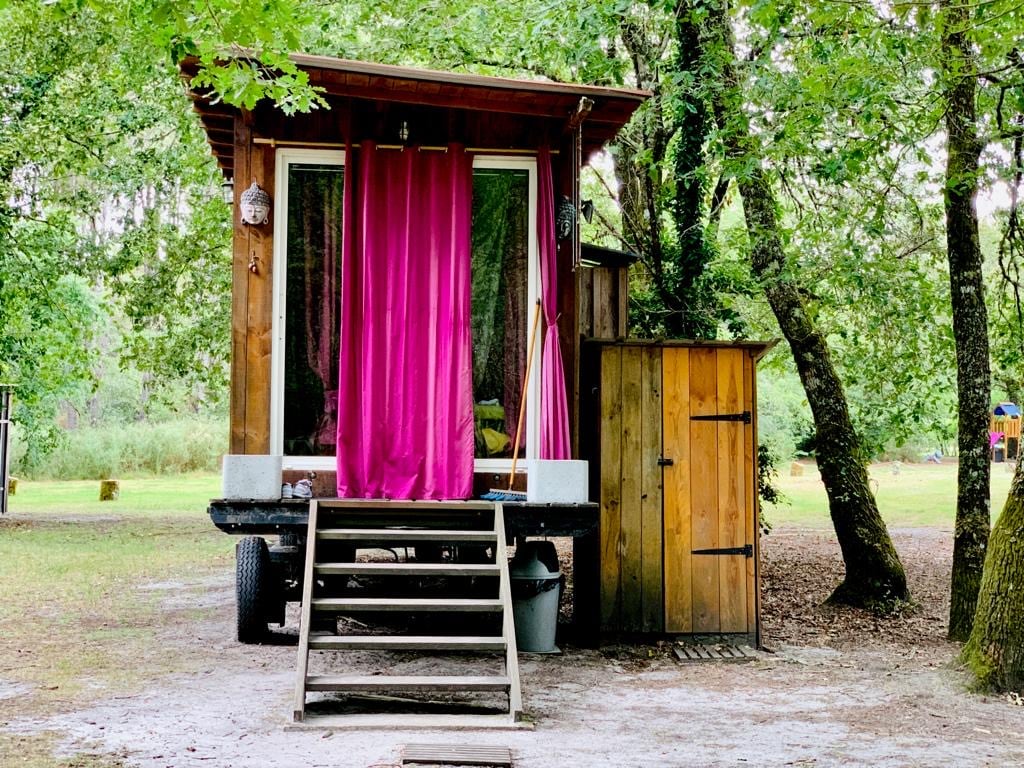 INTO THE WILD - Roulotte Cosy Séjournez dans notre roulotte cosy au cœur du parc naturel régional des Landes de Gascogne. Situé sur un airial de 2,5 hectares, à seulement 40 min de Bordeaux, 25 min du bassin d'Arcachon et 1h30 de l'Espagne. 🌿 Profitez d'une chambre adulte avec lit double, d'une chambre enfant (lit 120), d'une salle de bain, d'une cuisine équipée avec frigo-congélateur et gazinière, ainsi que d'un salon. Détendez-vous sur la terrasse extérieure.