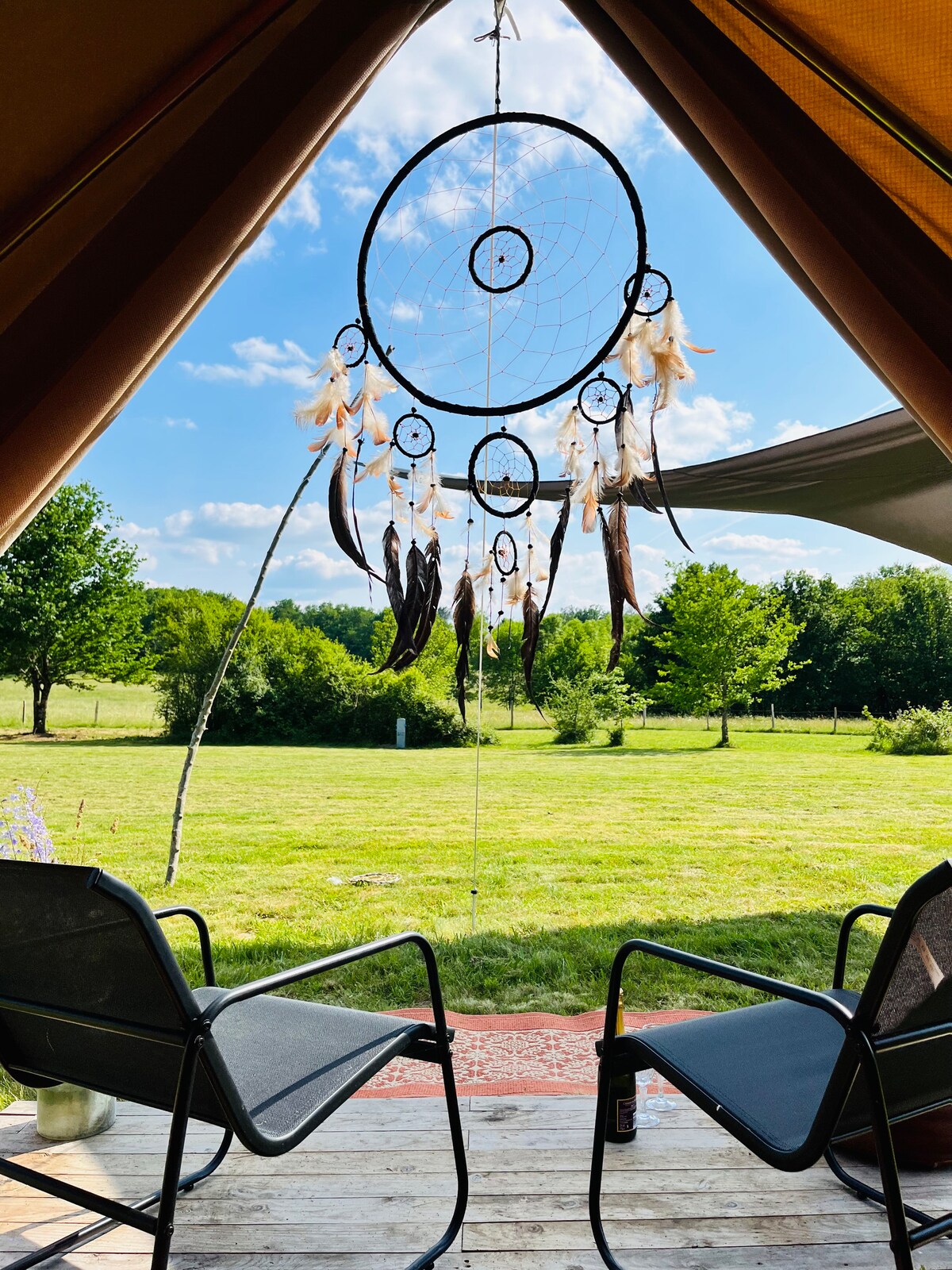 Tipi Apache équipé avec Jacuzzi privatif situé au milieu d'une forêt de chênes. Venez profitez en pleine nature d’une escapade à deux et vivez dans cet hébergement atypique une expérience apaisante et loin du stress quotidien. Plusieurs chemins de randonnées vous permettrons de découvrir nos paysages vallonnés à deux pas. Lit fait, linge de toilette fourni, douche solaire, Climatiseur, hamac, plancha, mini frigo, vaisselle, cafetière.