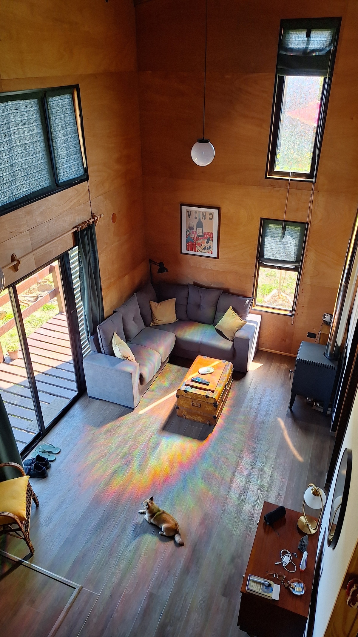 Hermosa cabaña a 4 cuadras de la playa, orientada al norte en el Océano Atlántico. Dos dormitorios, uno tipo estudio abierto al espacio en entrepiso y un cuarto debajo, ideal para parejas. Cuenta con estufa de alto rendimiento. Cama de dos plazas y cama marinera con dos colchones de una plaza.