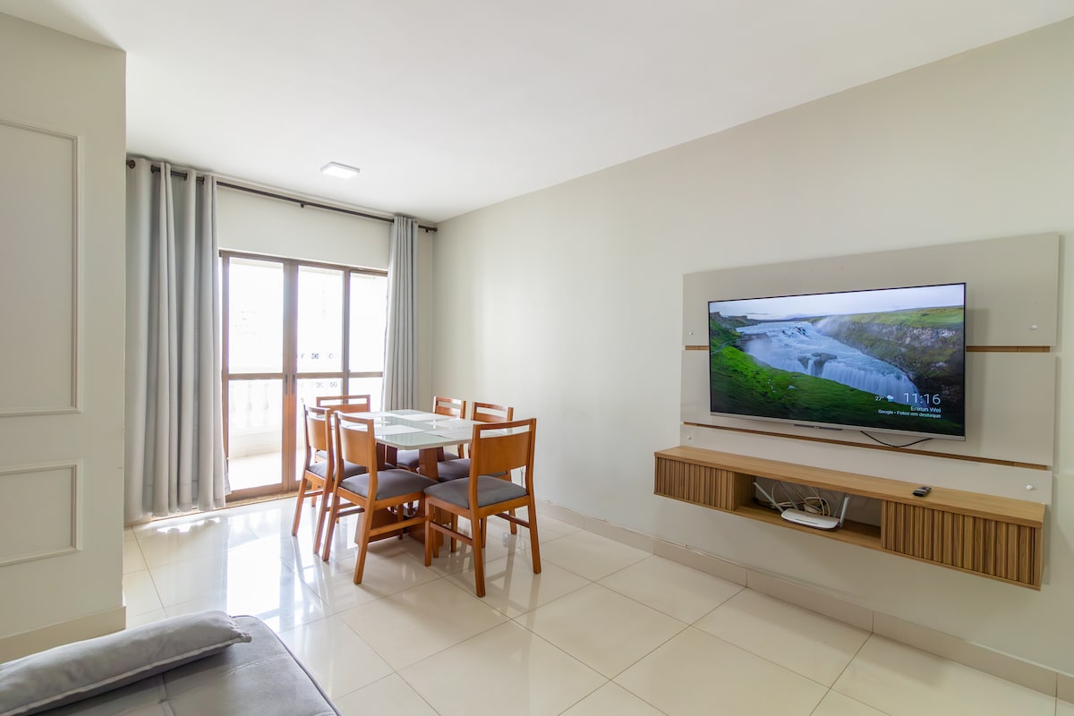 🤩 Condomínio novo ❗️Um Ap único, elegante e sofisticado, feito para você se sentir em casa. Assista seu filme favorito no quarto ou na sala na mais moderna Smart TV giratória com ambiente com ar condicionado, mesa de jantar e espaço de trabalho dedicado. Repouse na melhor cama, delicie-se do chuveiro mais gostoso, aprecie a varanda e uma lindo por do sol com vista para o parque e desfrute do contemporâneo Setor Bueno na melhor região de Goiânia ! Condomínio Tai Residências