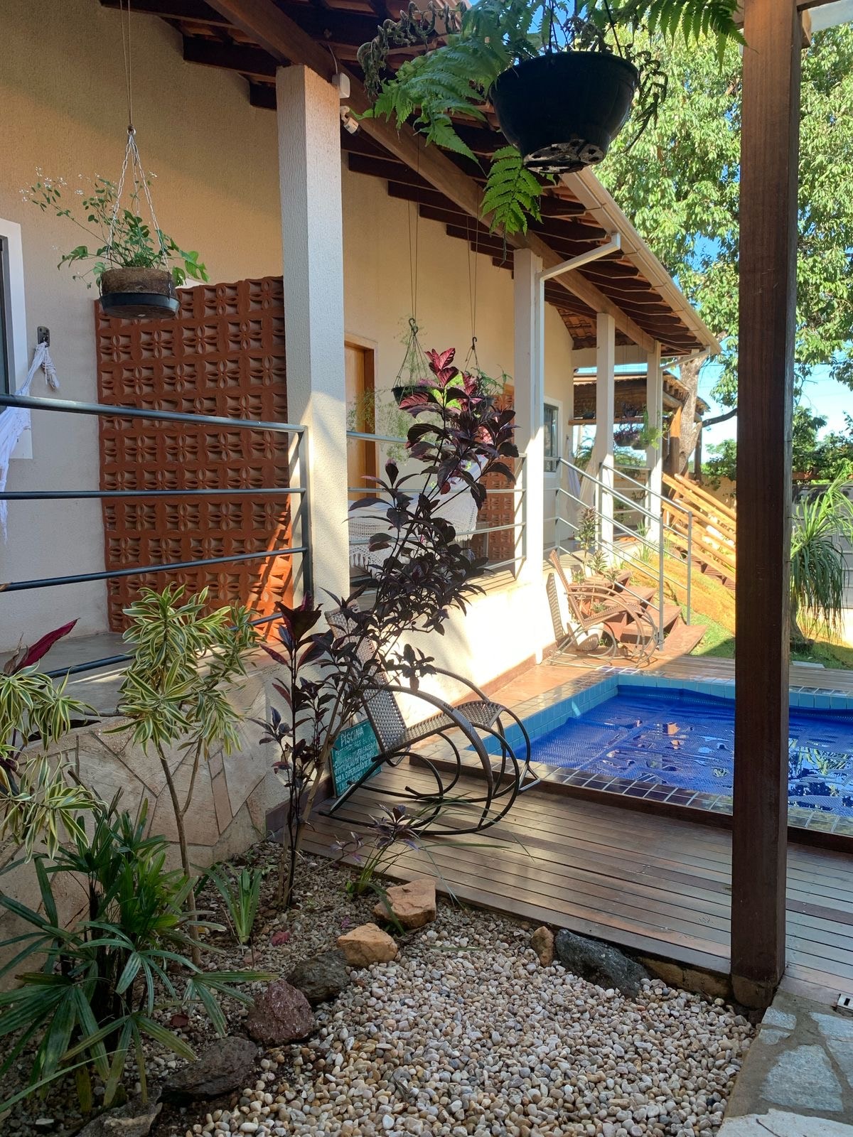 Acomodações: 4 suítes confortáveis, todas equipadas com ar-condicionado Ambientes limpos e organizados Lazer e Conforto: Piscina privativa com cascata e iluminação em LED Varanda Gourmet e Cozinha Gourmet completa, equipada para refeições e momentos de convivência Cozinha equipada com: Geladeira Fogão cooktop Forno micro-ondas Sanduicheira Chaleira elétrica Liquidificador Filtro purificador de água