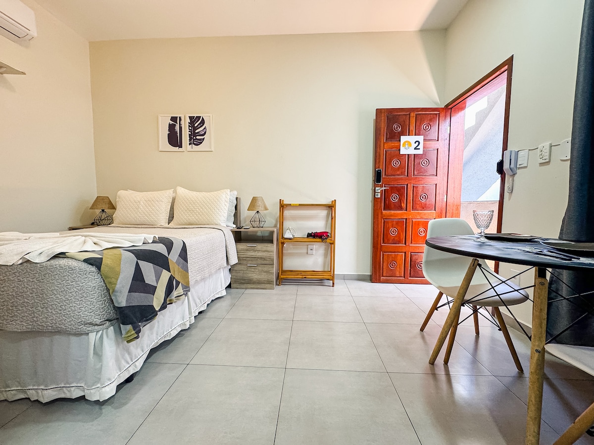 전용 주방과 욕실(게스트만 사용)이 있는 플랫으로 인터넷, 32인치 TV, 침구가 포함되어 있으며, 해변에서 두 블록 거리에 위치하고 있으며, 천장형 선풍기와 40cm 테이블형 선풍기가 있습니다.해변에 음료를 가지고 갈 수 있는 쿨러, 작은 발코니와 휴식 해먹, 전기 다리미, 커피 메이커, 전자레인지, 헤어드라이어가 갖춰져 있습니다. 플랫에 접근하려면 약 20미터의 쇼핑몰을 올라가야 합니다.