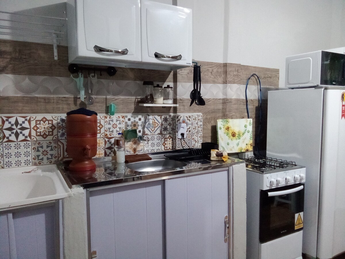kitnet com cozinha/lavanderia/quarto/banheiro.