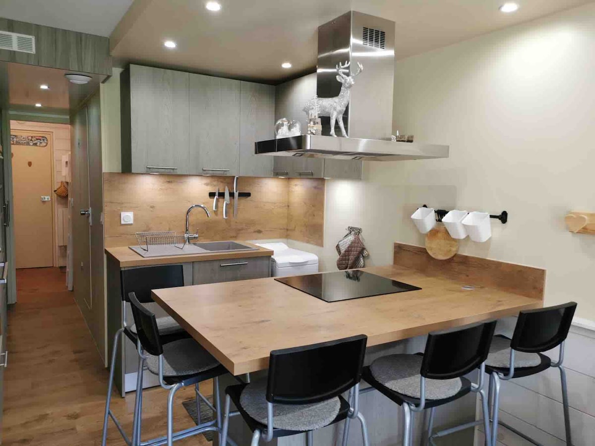 Studio de 25 m2 centre station. Accès pistes via ascenseur. A partir de l'hiver 2026/2027, vous aurez accès à un casier à skis. Bien équipé pour faire la cuisine. Coin chambre dans le couloir, au niveau de l'entrée : 1 lit double + 1 lit double en hauteur (mezzanine). Nous acceptons les courts séjours et des arrivées/départs n'importe quel jour de la semaine. Nous ne sommes pas sur place et donc chaque locataire doit réaliser avec soin le ménage du studio.