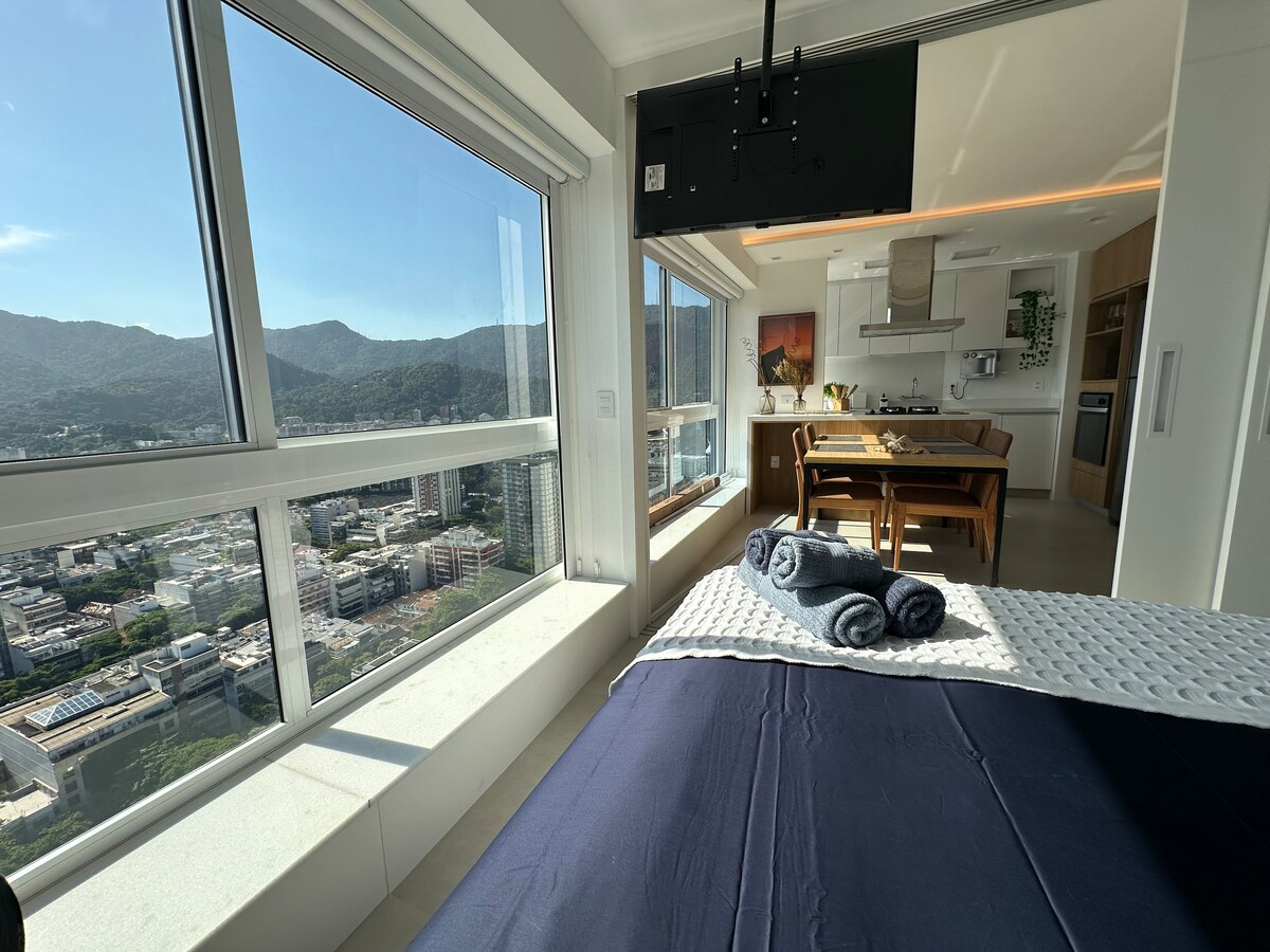 이파네마의 새로운 럭셔리 듀플렉스 펜트하우스 (100m2): 2명에게 이상적입니다. 온수 수영장이 있는 전용 옥상 테라스와 세련된 바비큐 공간, 시설이 완비된 주방, 그리스도상의 놀라운 전망을 자랑합니다! 고급 모던 가구와 장비를 갖춘 디자이너가 투영한 독특하고 세련된 장소입니다. 숙소는 완전히 자동화되어 있습니다. 해변에서 도보로 5분 거리에 있으며, 주민과 게스트를 위한 공용 수영장이 있는 공용 작업 공간, 세탁실, 테라스가 있는 새로운 세련된 건물에 있습니다.